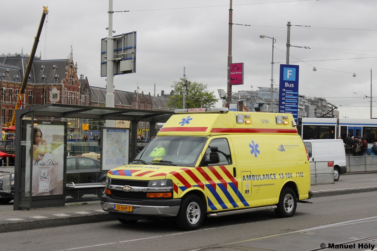Die ist ein RTW der Ambulance Amsterdam aufgebaut auf einen für Deutschland ungewöhnlichen Chevrolet Van.